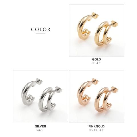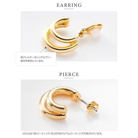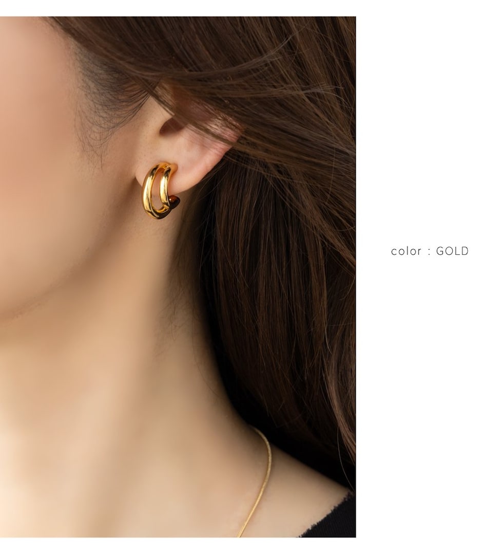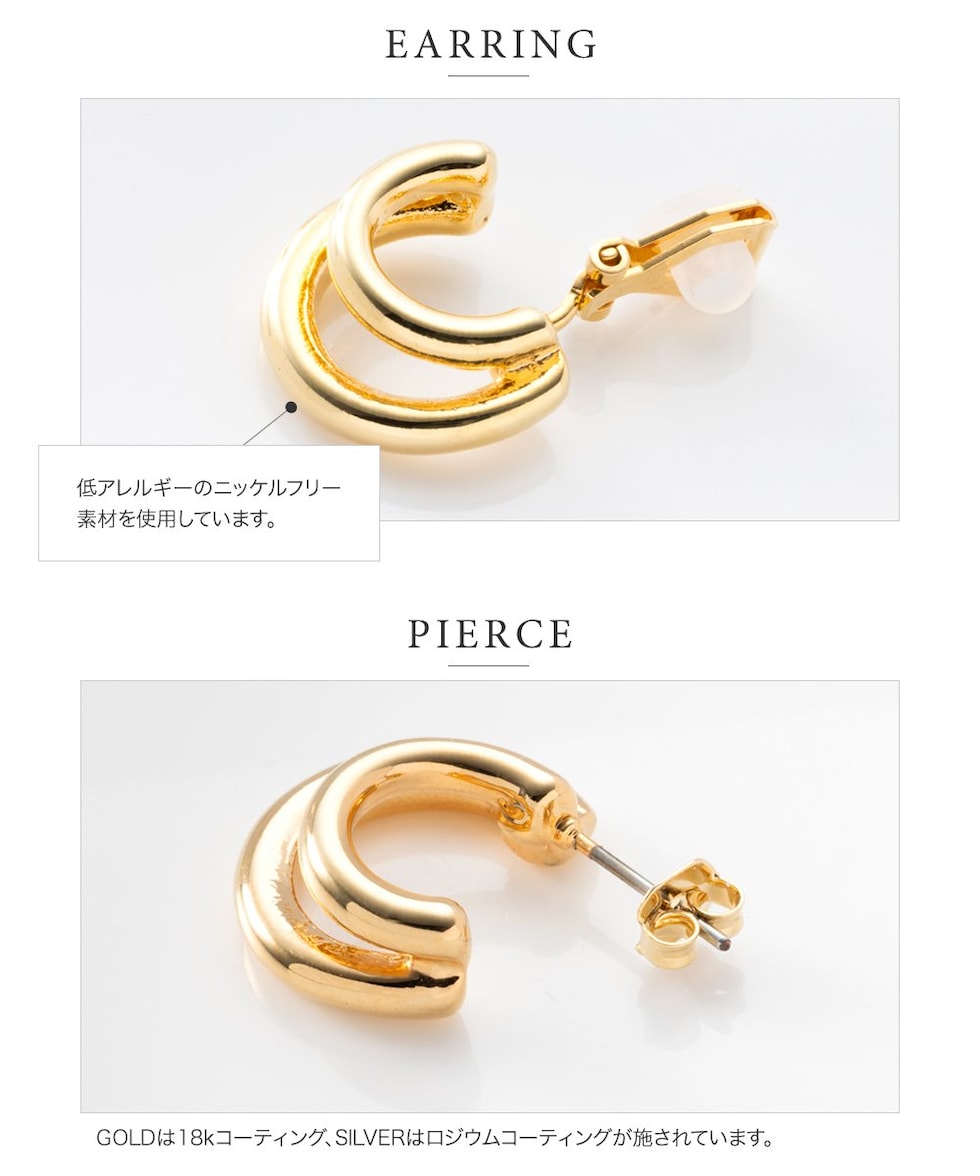 イヤリング ピアス 金属アレルギー ニッケルフリー レディース フープ ダブルライン レイヤード風 2連 シリコンカバー cream dot ゆうパケット [ゴールド_ピアス]