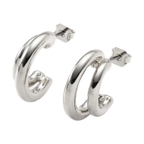 イヤリング ピアス 金属アレルギー ニッケルフリー レディース フープ ダブルライン レイヤード風 2連 シリコンカバー cream dot ゆうパケット [シルバー_ピアス]
