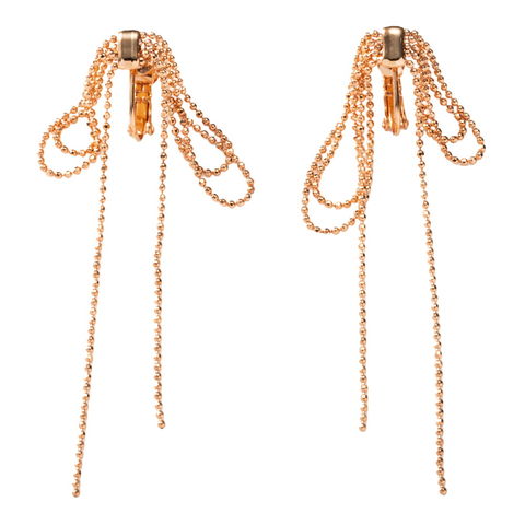 華奢ドットチェーンのダブルリボンピアス/イヤリング。2重になったチェーンがボリューミーだけどとっても華奢なボールチェーンがさらりと揺れて繊細なフォルムを完成させる洗練デザイン。