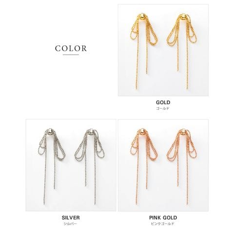 ピアス イヤリング 金属アレルギー ニッケルフリー レディース 18kコーティング リボン チェーン ボールチェーン ダブル 2重 揺れる cream dot ゆうパケット [シルバー_イヤリング]