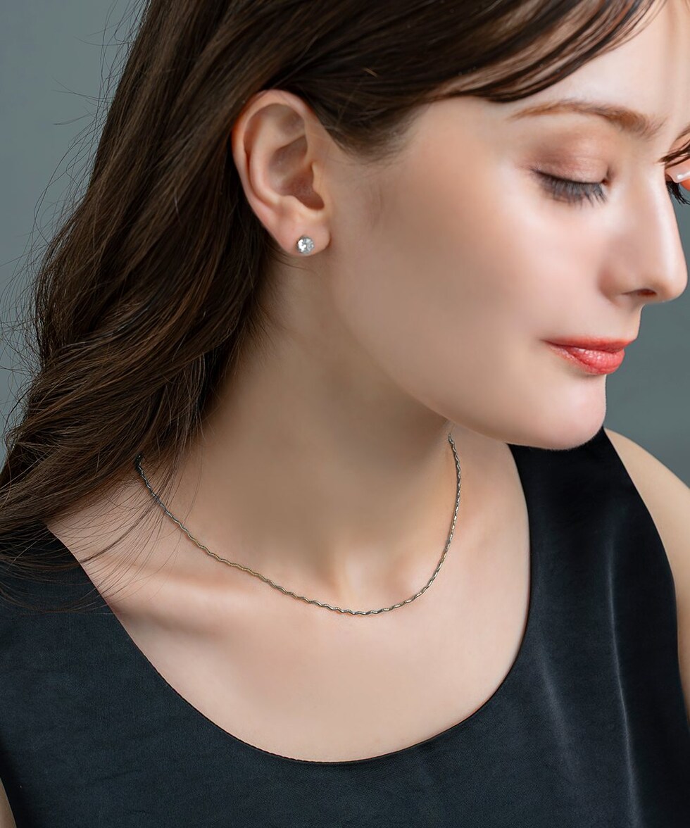 ネックレス 金属アレルギー ニッケルフリー レディース 2点セット ショート チェーン ウェーブ 3way スキンジュエリー 極細 cream dot ゆうパケット [シルバー_2セット]