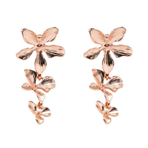 ピアス イヤリング 金属アレルギー ニッケルフリー レディース フラワー 3連 大ぶり 揺れる メタルフラワー cream dot ゆうパケット [ピンクゴールド_イヤリング]