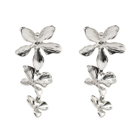 ピアス イヤリング 金属アレルギー ニッケルフリー レディース フラワー 3連 大ぶり 揺れる メタルフラワー cream dot ゆうパケット [シルバー_イヤリング]