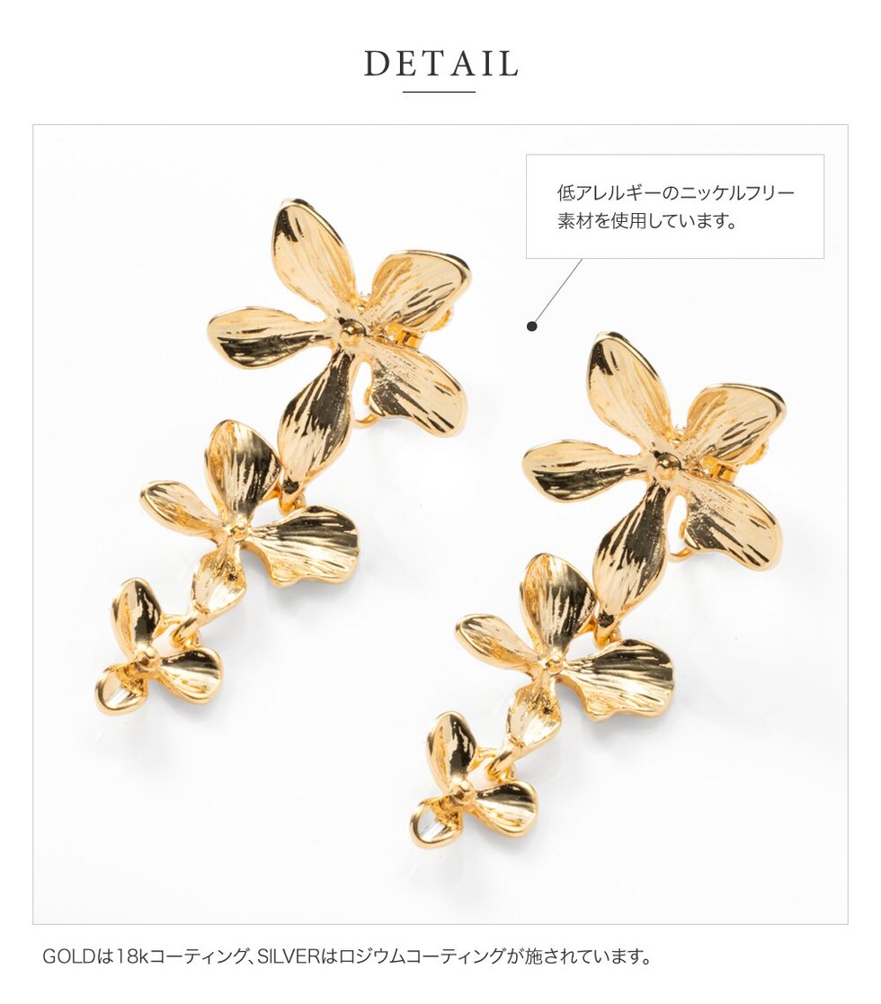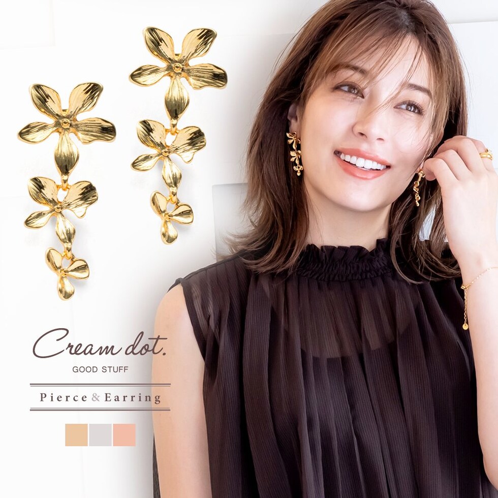 ピアス イヤリング 金属アレルギー ニッケルフリー レディース フラワー 3連 大ぶり 揺れる メタルフラワー cream dot ゆうパケット [シルバー_ピアス]