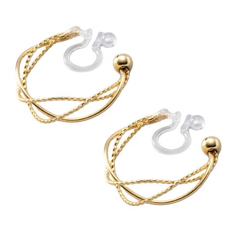ピアス イヤリング 金属アレルギー ニッケルフリー レディース フープ ドットライン ツイスト 3連 シリコンキャッチ cream dot ゆうパケット [ゴールド_イヤリング]