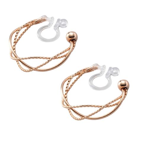 ピアス イヤリング 金属アレルギー ニッケルフリー レディース フープ ドットライン ツイスト 3連 シリコンキャッチ cream dot ゆうパケット [ピンクゴールド_イヤリング]