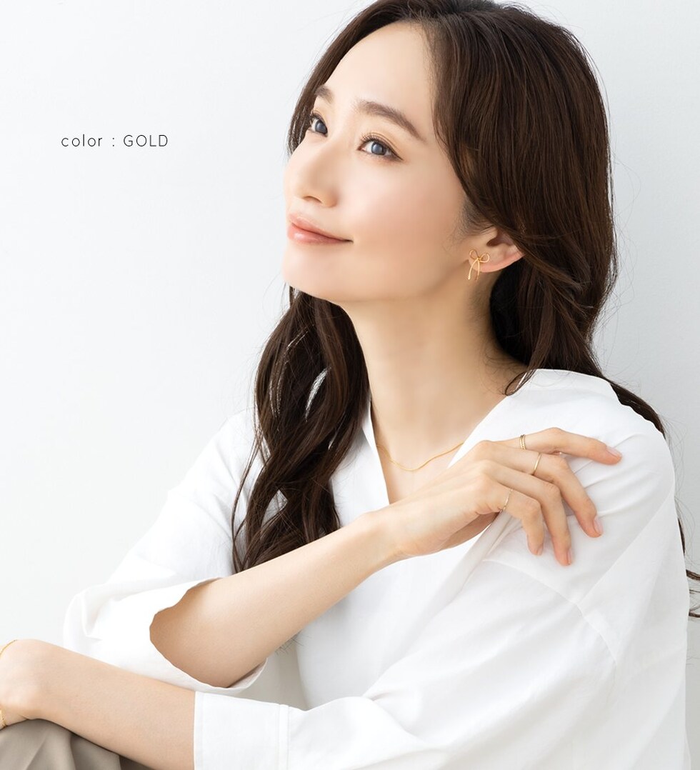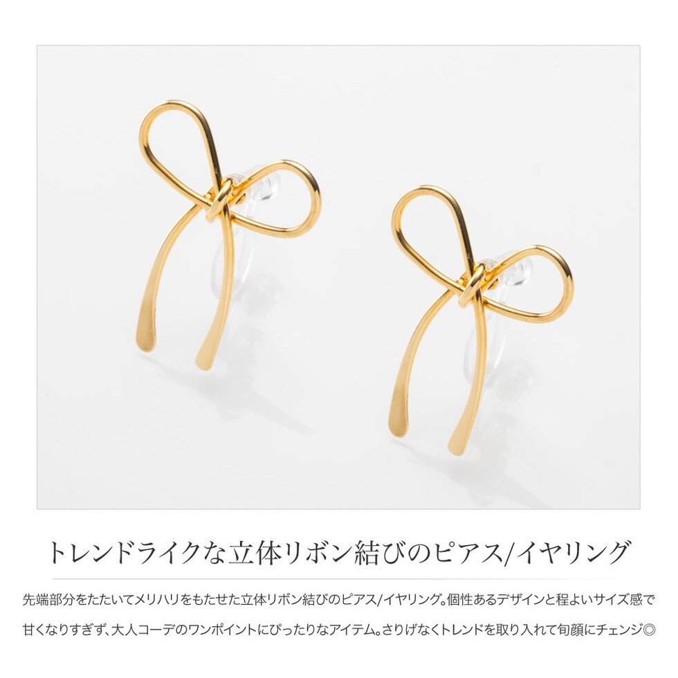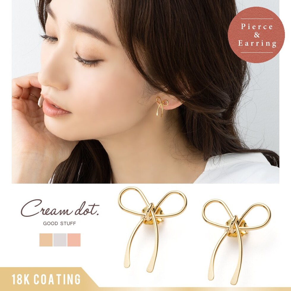 ピアス イヤリング 金属アレルギー ニッケルフリー レディース リボン 立体 cream dot ゆうパケット [ゴールド_ピアス]