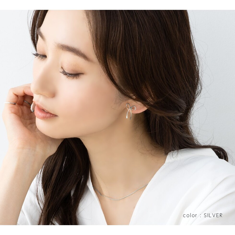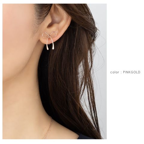 先端部分をたたいてメリハリをもたせた立体リボン結びのピアス/イヤリング。個性あるデザインと程よいサイズ感で甘くなりすぎず、大人コーデのワンポイントにぴったりなアイテム。さりげなくトレンドを取り入れて旬顔にチェンジ◎