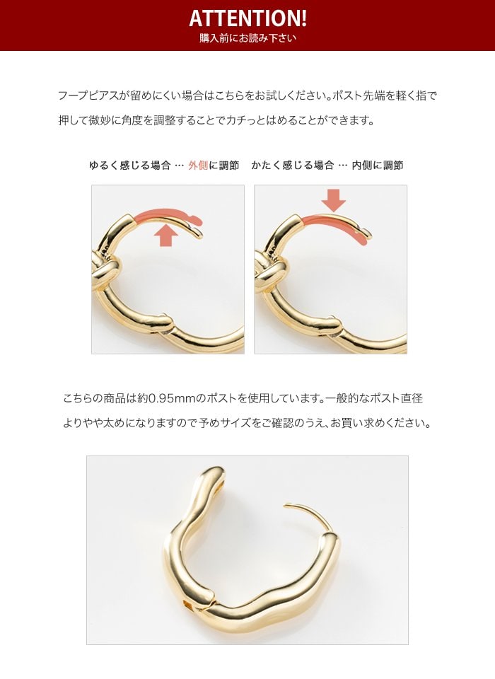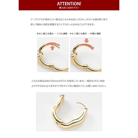 ピアス 金属アレルギー ニッケルフリー レディース フープ 変形 ヴィンテージ調 艶消し マット歪み 中折れ キャッチレス 開閉式 cream dot ゆうパケット [ヴィンテージシルバー_ピアス]