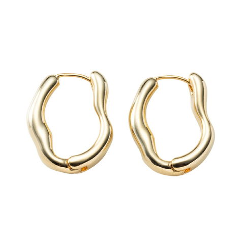 ピアス 金属アレルギー ニッケルフリー レディース フープ 変形 ヴィンテージ調 艶消し マット歪み 中折れ キャッチレス 開閉式 cream dot ゆうパケット [ゴールド_ピアス]