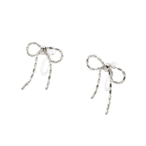 華奢なライスチェーンでリボンをかたどったピアス/イヤリング。デザインの異なる2タイプをご用意しました。煌めくチェーンとリボンモチーフがマッチしたデザインで、お顔周りに華やぎを添えてくれるアイテムです。
