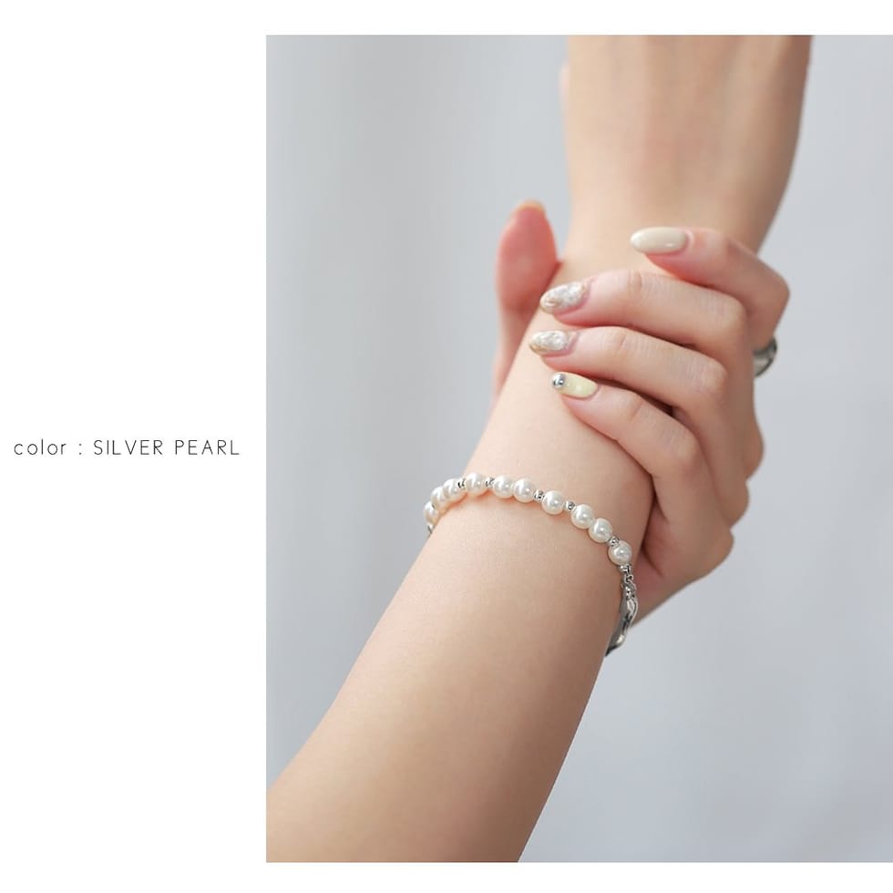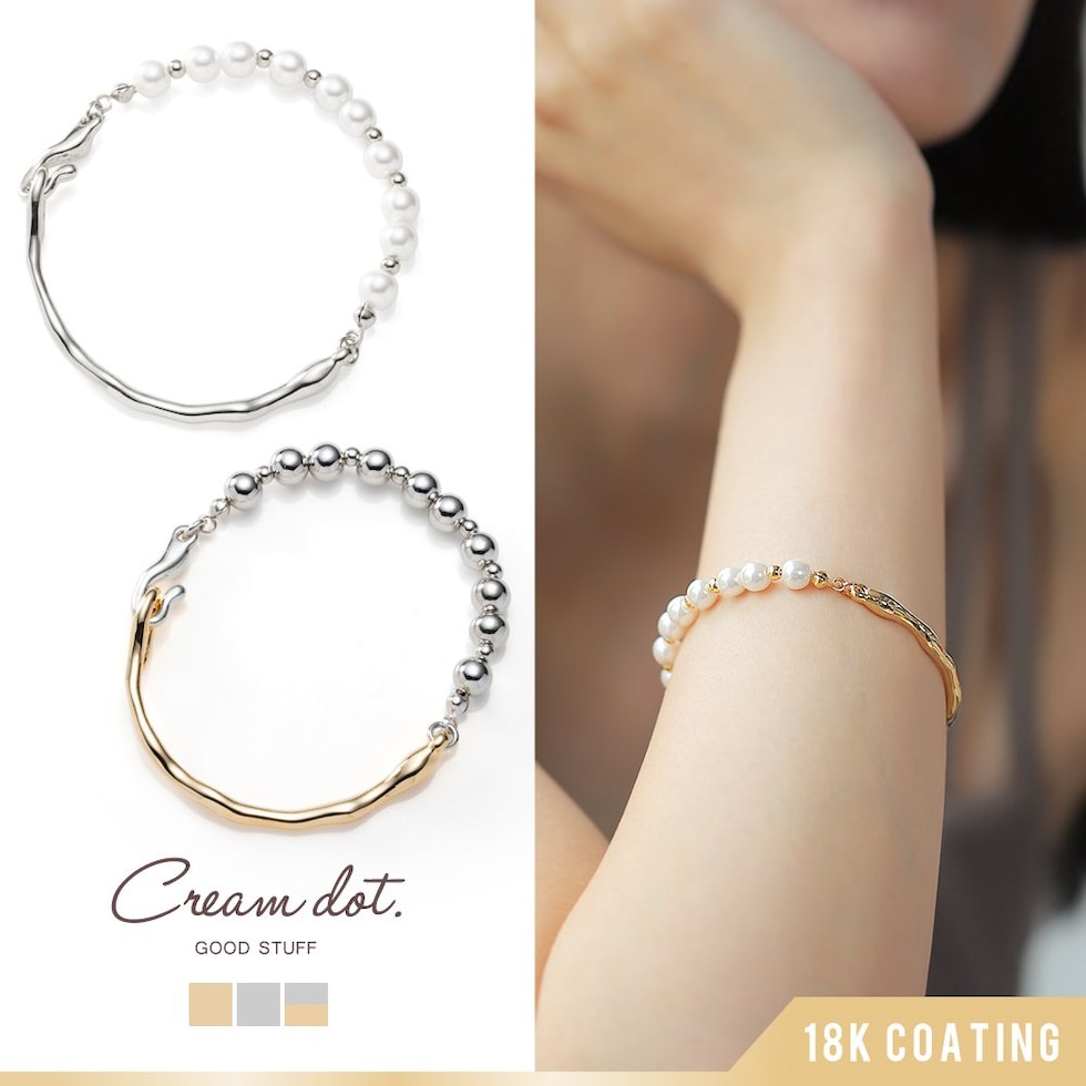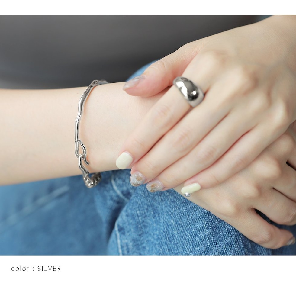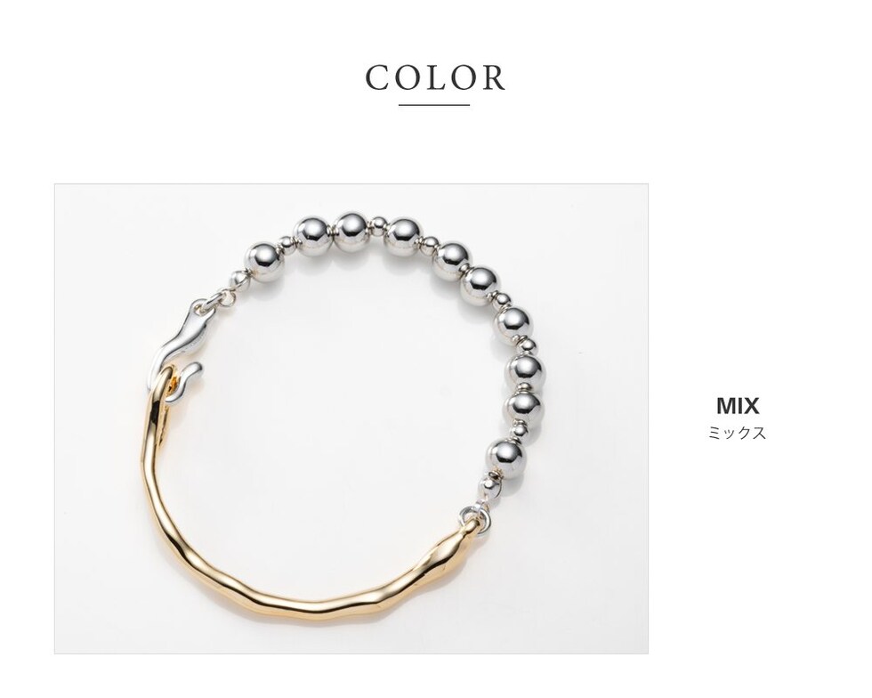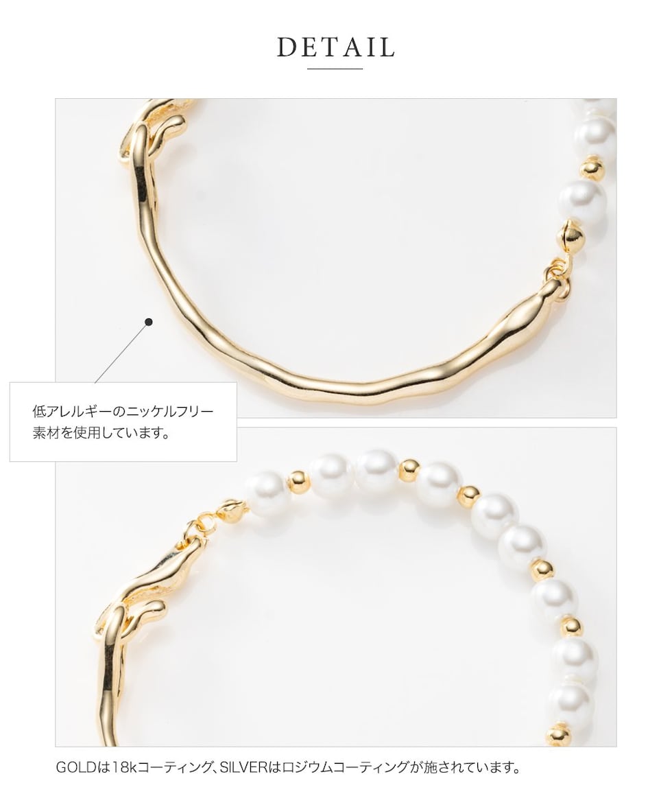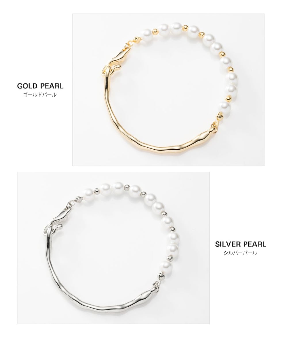 艶めくパール/メタルボールから選べるクラフトメタルのバングル。クラフト感溢れる歪なメタルラインとこだわりのデザイン留め具がこなれた雰囲気を演出◎360度どこから見てもおしゃれに見えるオススメの一品です。