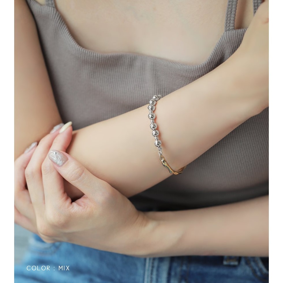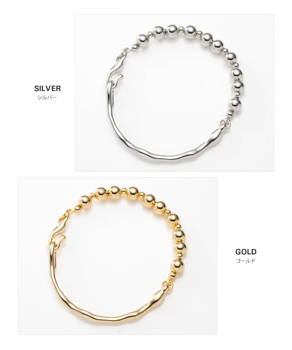バングル 金属アレルギー ニッケルフリー レディース メタルボール パール スフィア ミックス コンビ フックデザイン 艶 クラフト調 歪み cream dot ゆうパケット [ゴールド×パール_ワンサイズ]