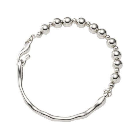 バングル 金属アレルギー ニッケルフリー レディース メタルボール パール スフィア ミックス コンビ フックデザイン 艶 クラフト調 歪み cream dot ゆうパケット [シルバー_ワンサイズ]