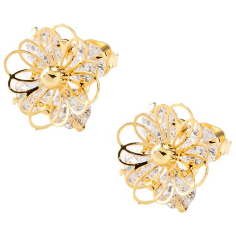 透かしフラワーのビジューイヤリング/ピアス。ワイヤーフラワーの奥に隠した4粒のジルコニアがさりげなく煌めき、絶妙なサイズ感でお顔周りを程よく飾ります。ちょっとした贈り物にも◎