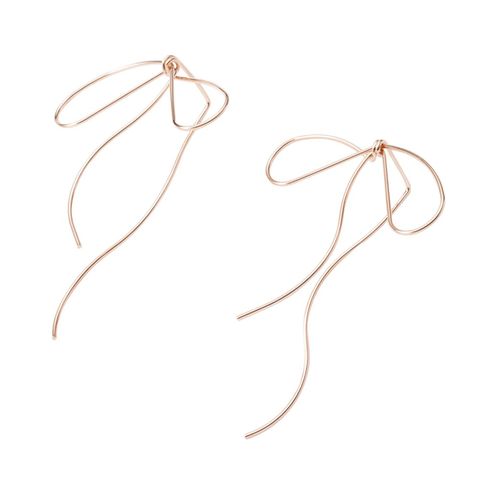 耳元でゆるりと結んでいる様なワイヤーリボンモチーフのピアス。先端を通して着用するから、リボンの片方が耳の後ろ側にある個性的なデザイン。華奢ラインの流れるようなリボンモチーフで、トレンドライクなスタイリングに◎