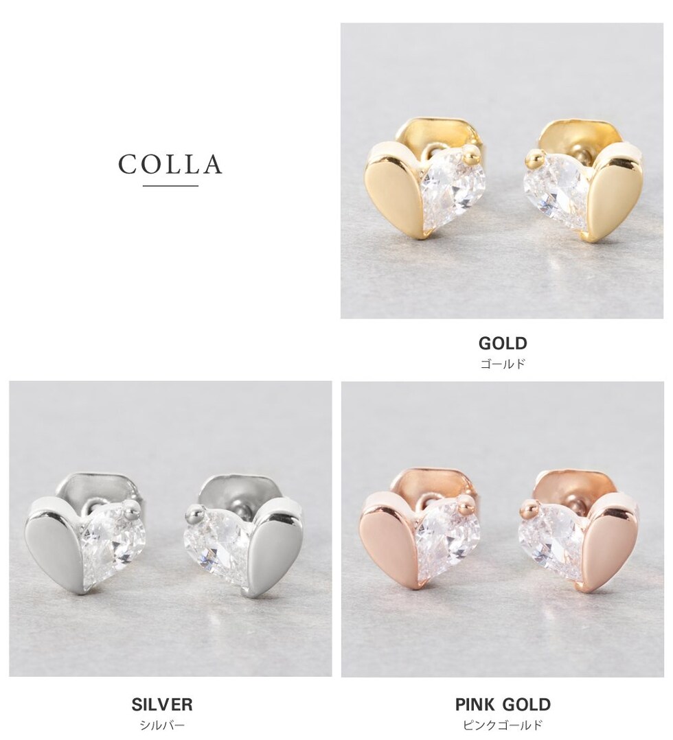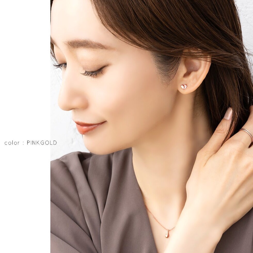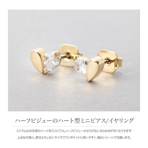 ミニマムな存在感のハート型ミニピアス。ハーフビジューのさりげないきらめきが甘くなりすぎず上品な印象に。悪目立ちしないサイズでワンポイントに使いやすく、幅広いシーンで活躍します。