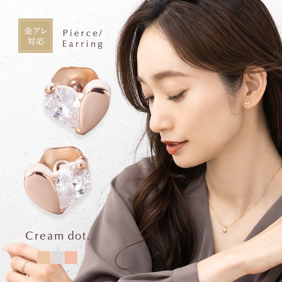 ピアス イヤリング 金属アレルギー ニッケルフリー レディース ハート ビジュー ハーフ 小さめ cream dot ゆうパケット [ピンクゴールド_ピアス]