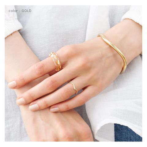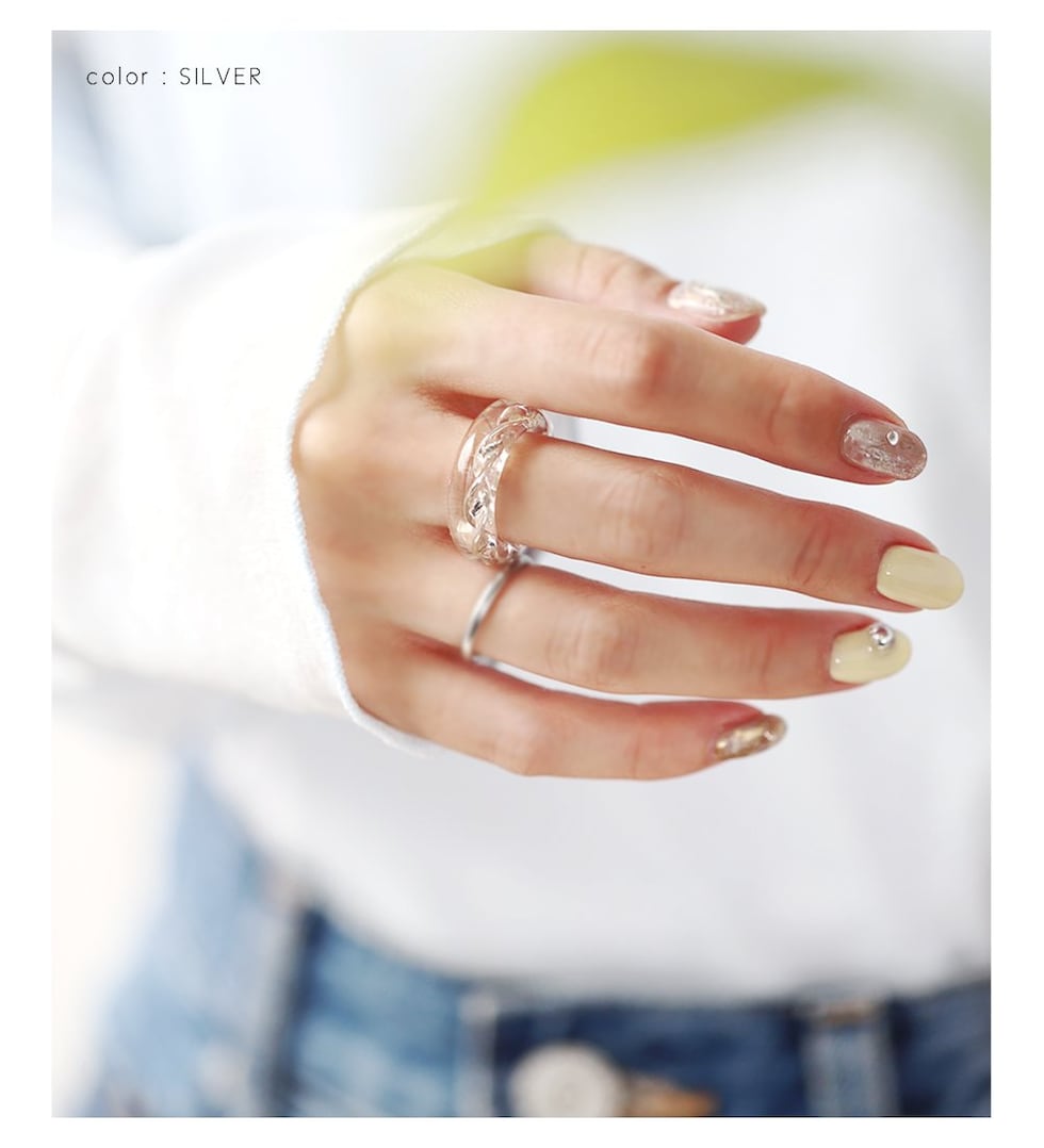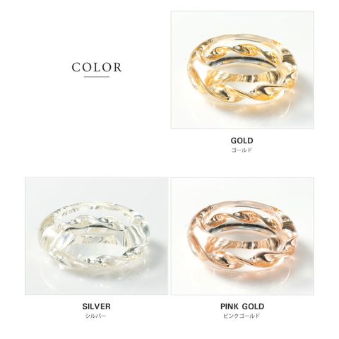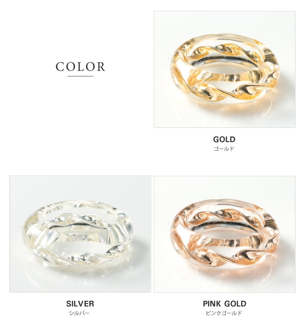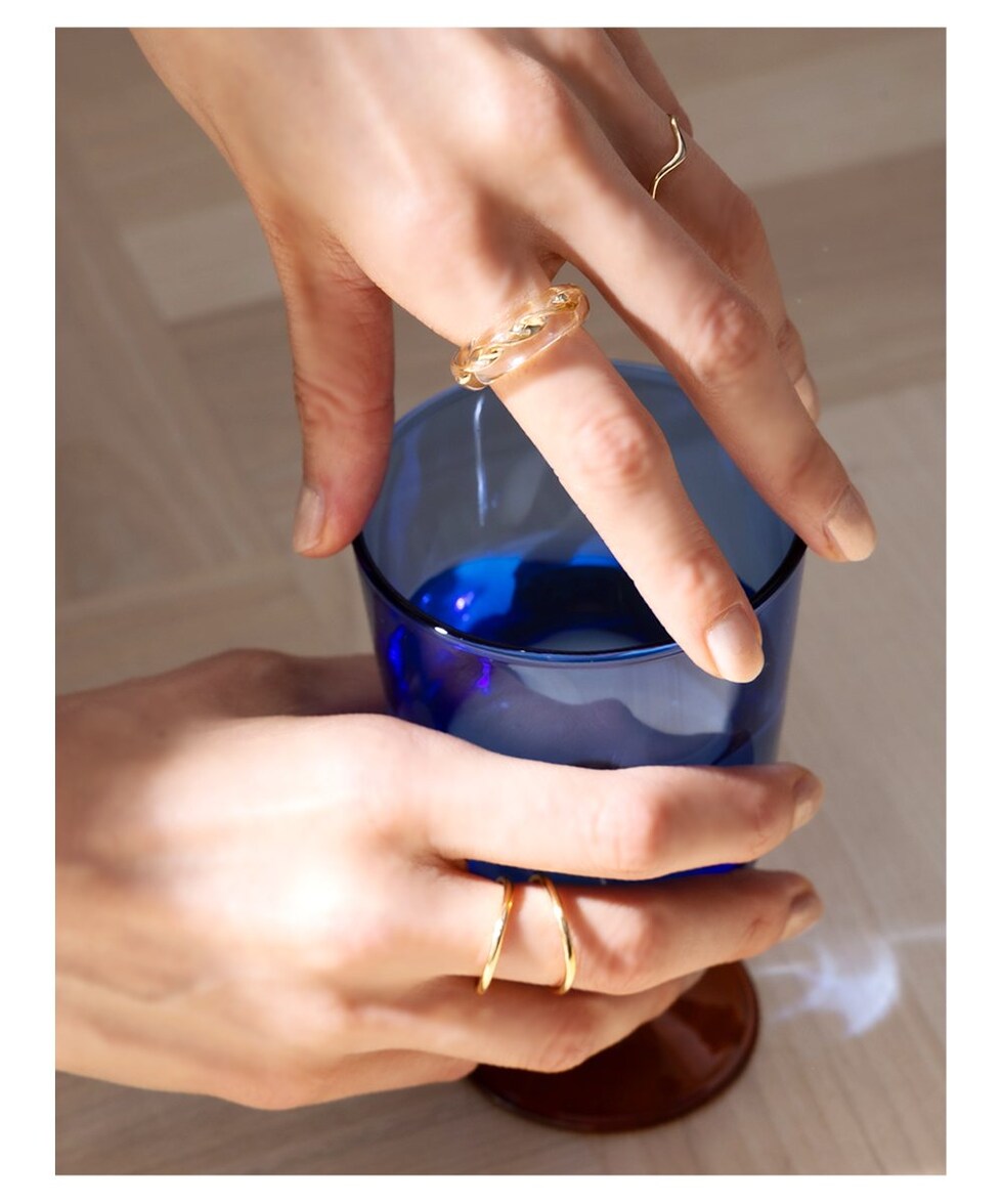 ぷっくりクリアリングにツイストメタルリングを封入した涼しげリング。メタルにまとった樹脂素材がアンニュイな手元を演出。リングinリングの他にない個性的なデザインで差を付ける◎