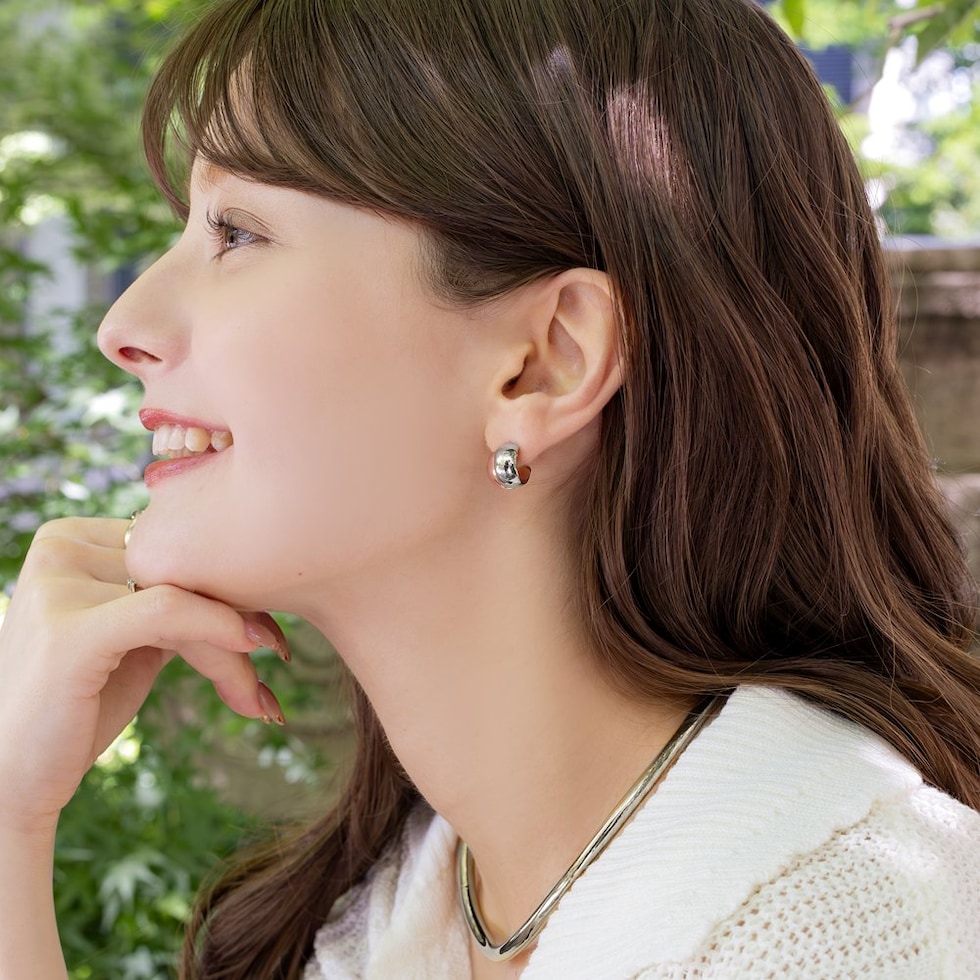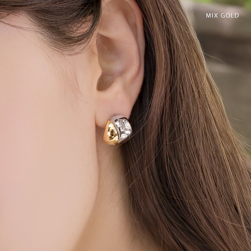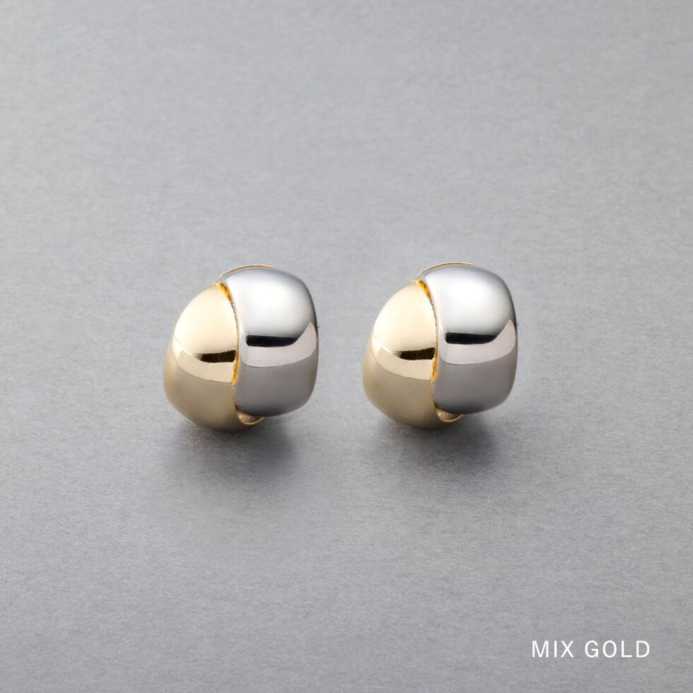 コンビカラーのぷっくりとしたメタルのピアス。小ぶりなサイジングとシルバーとMIXしたメタルカラーがこなれた印象に仕上がるアイテム。周りと差をつけられるオススメのひと品。