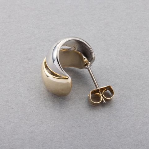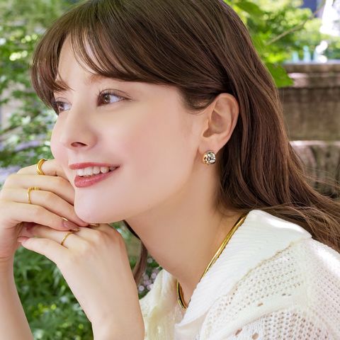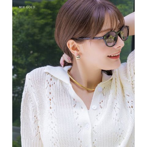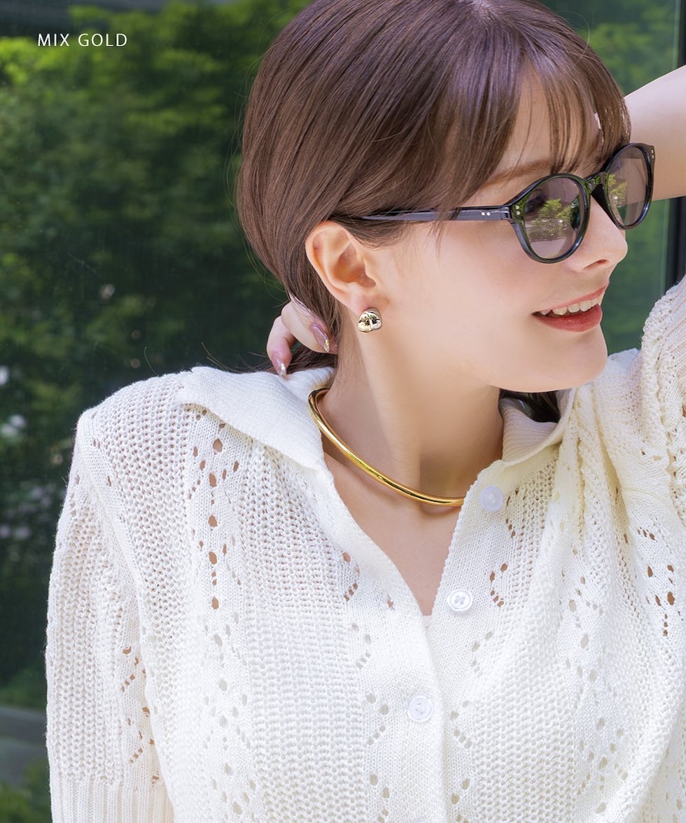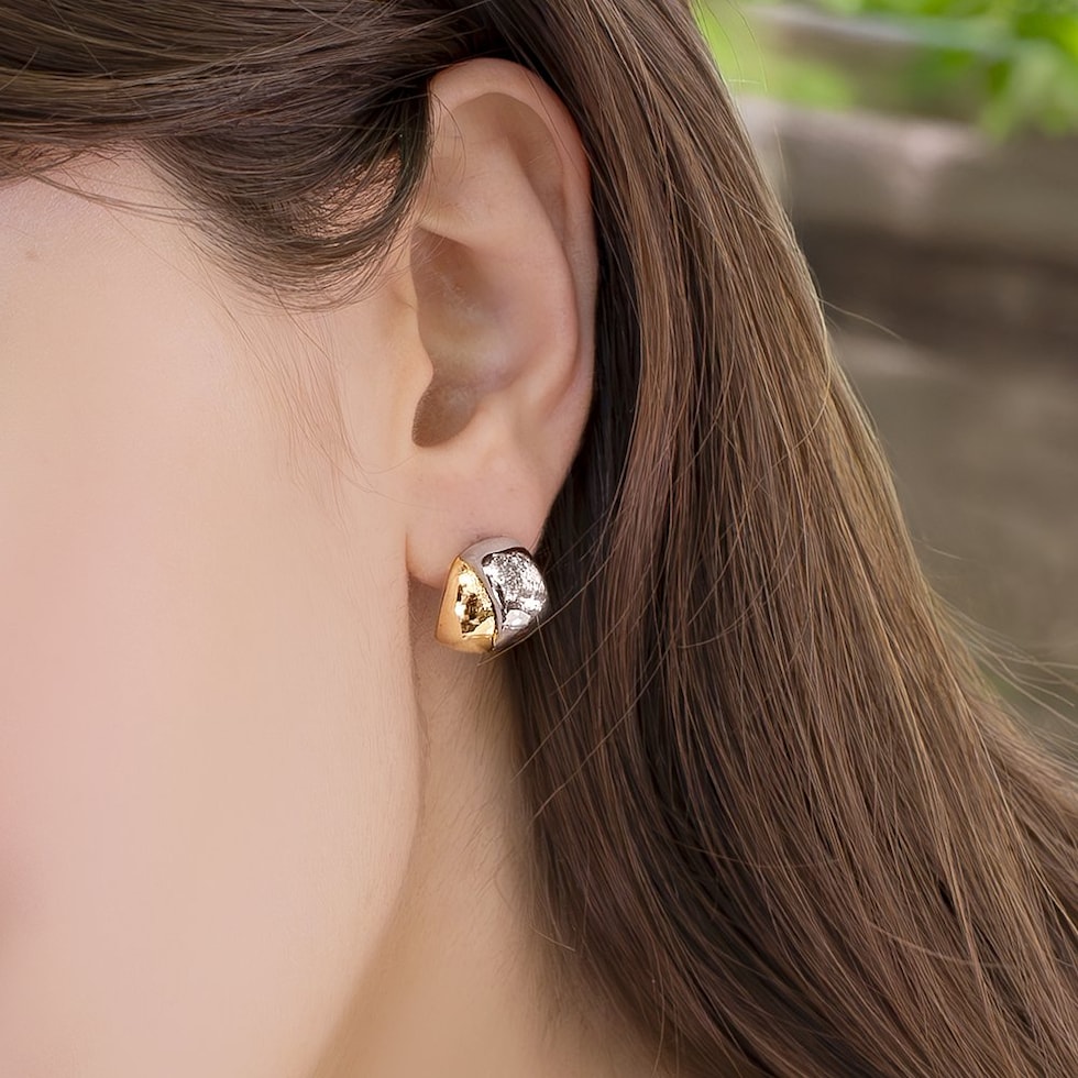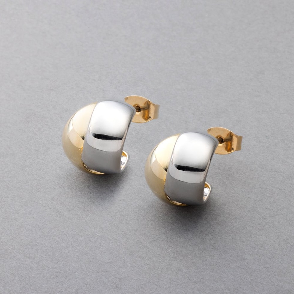 コンビカラーのぷっくりとしたメタルのピアス。小ぶりなサイジングとシルバーとMIXしたメタルカラーがこなれた印象に仕上がるアイテム。周りと差をつけられるオススメのひと品。