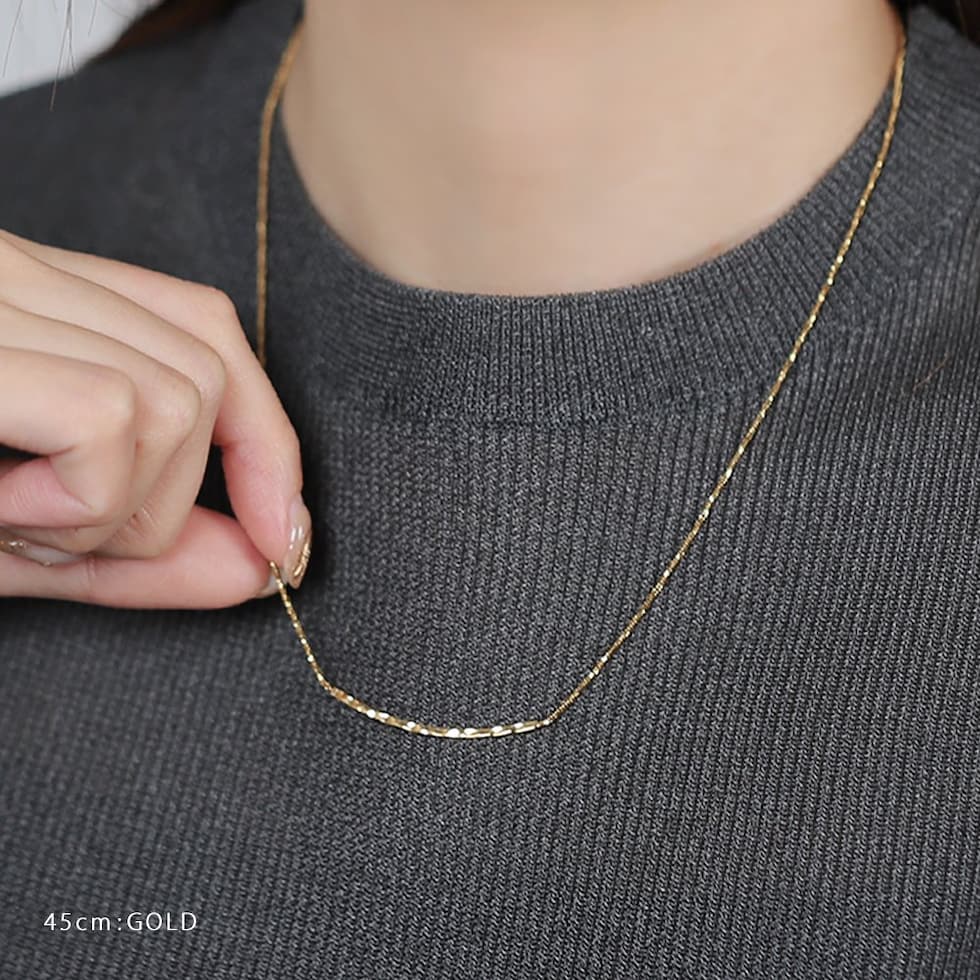 ネックレス ステンレス 金属アレルギー サージカルステンレス レディース つけっぱなし カーブバー たたき加工 メタル ショート チェーン 細い cream dot ゆうパケット [ゴールド_40cm]