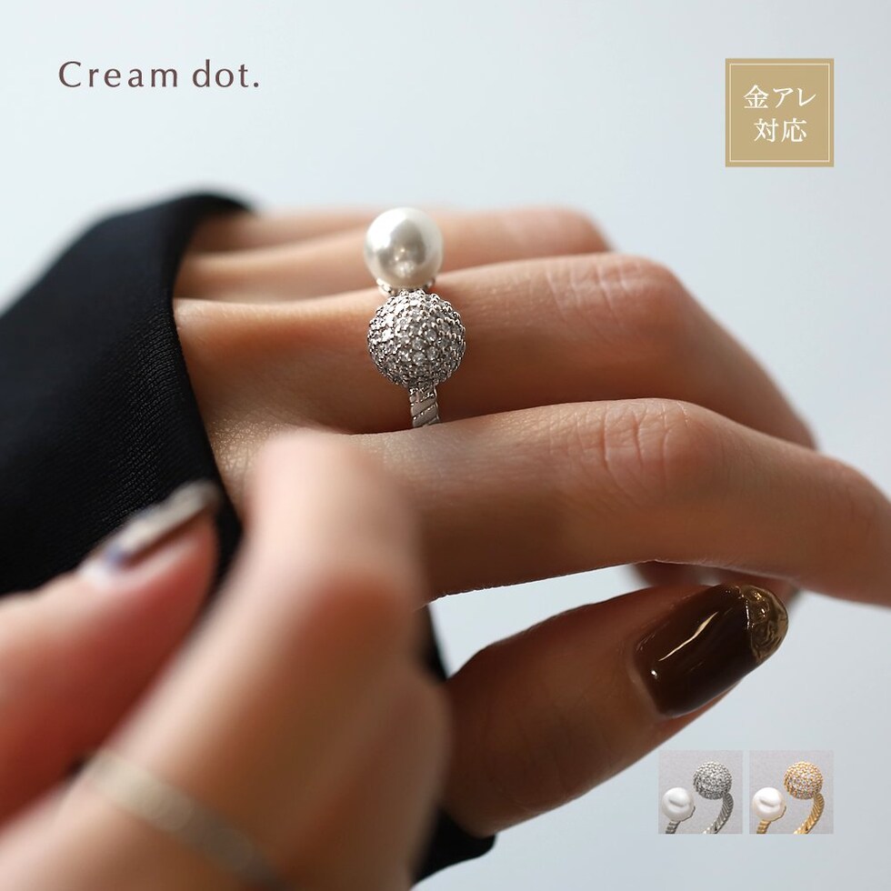 リング 指輪 金属アレルギー ニッケルフリー レディース フォークリング パヴェ ビジュー パール オープンリング 微調整可能 cream dot ゆうパケット [シルバー_フリーサイズ]