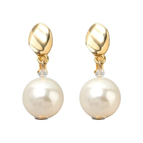 イヤリング ピアス 金属アレルギー ニッケルフリー レディース パール 一粒 メタル 変形 ビーズ 揺れる ネジ式 cream dot ゆうパケット [ゴールド_イヤリング]