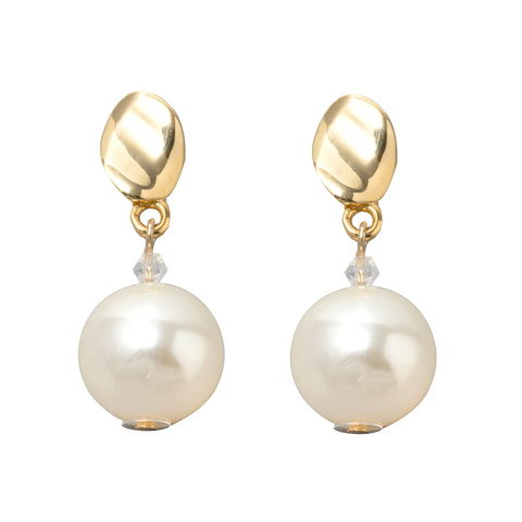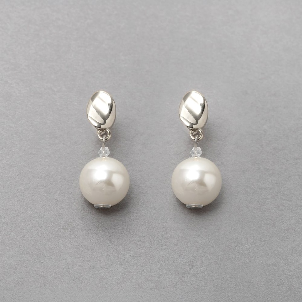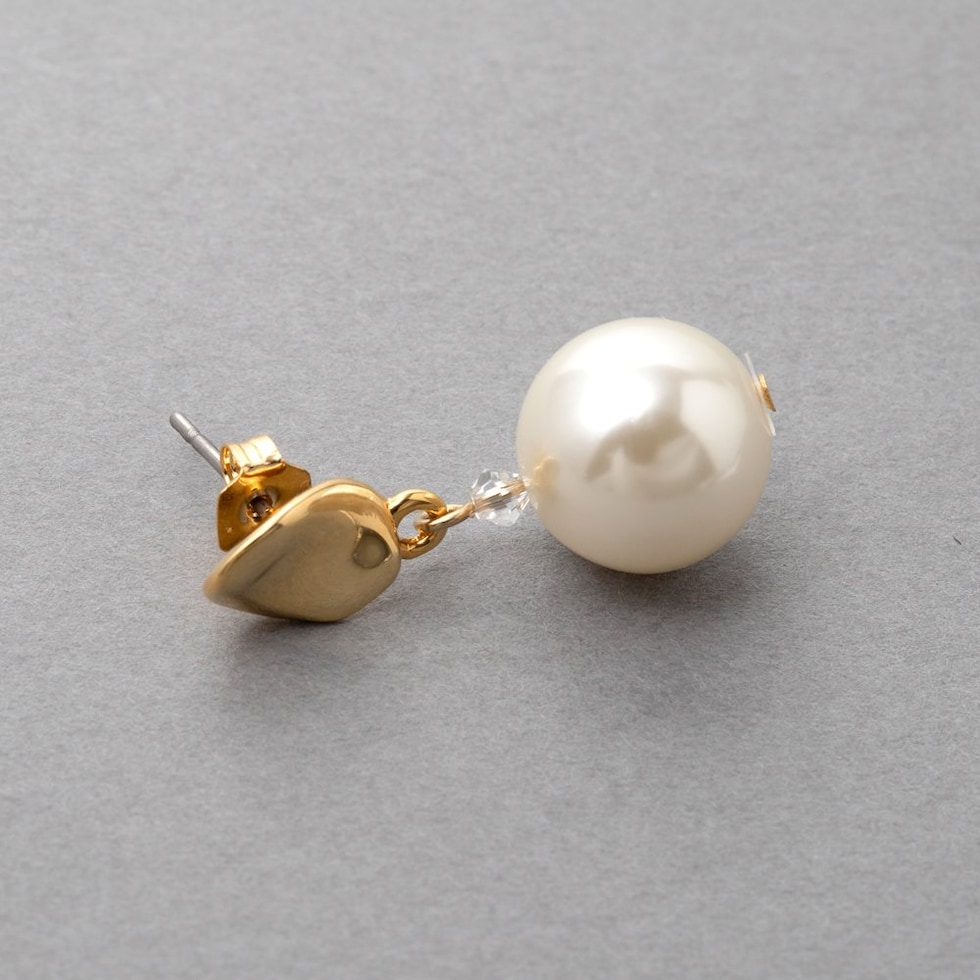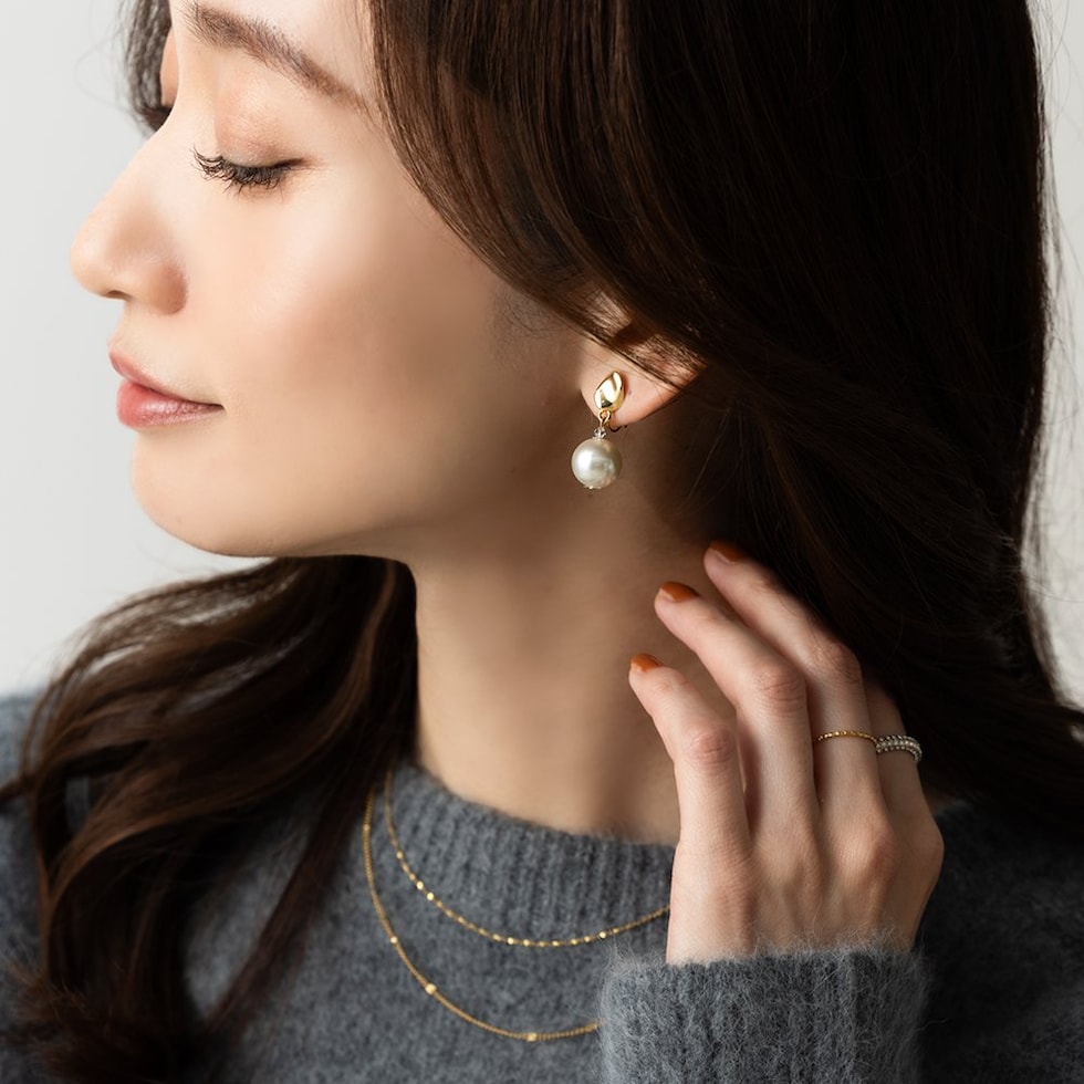 ニュアンスのあるウェーブメタルと一粒パールを組み合わせた華やかなイヤリング/ピアス。さりげなくクリアビーズを飾って抜け感をプラスした女性らしいデザイン。普段使いはもちろん、結婚式・お呼ばれ・パーティーシーンなどで活躍すること間違いなし◎