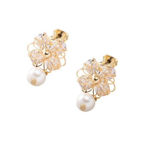 ピアス イヤリング 金属アレルギー ニッケルフリー レディース フラワー ビジュー パール ワイヤー 透かし cream dot ゆうパケット [ゴールド_ピアス]