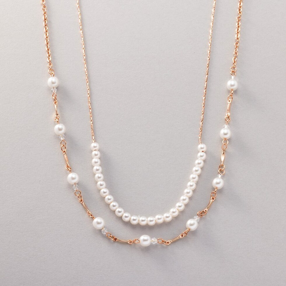 ネックレス 金属アレルギー ニッケルフリー レディース 2点セット ショート チェーン パール 小粒 3way ステーション cream dot ゆうパケット [ピンクゴールド_2セット]