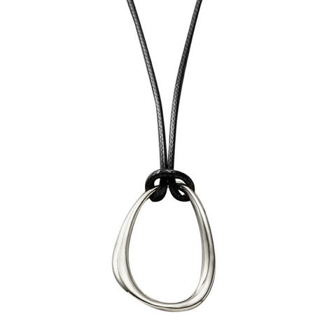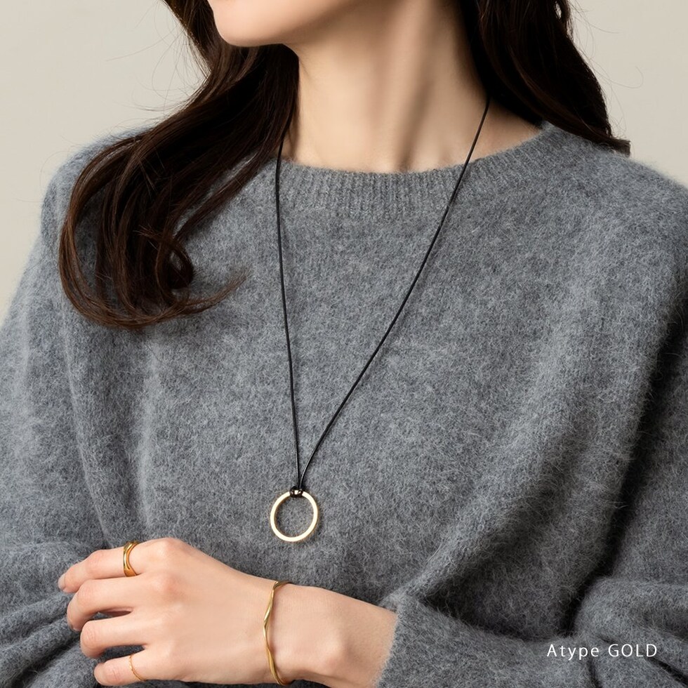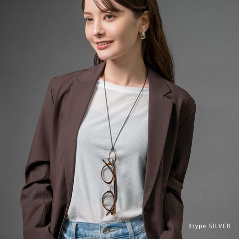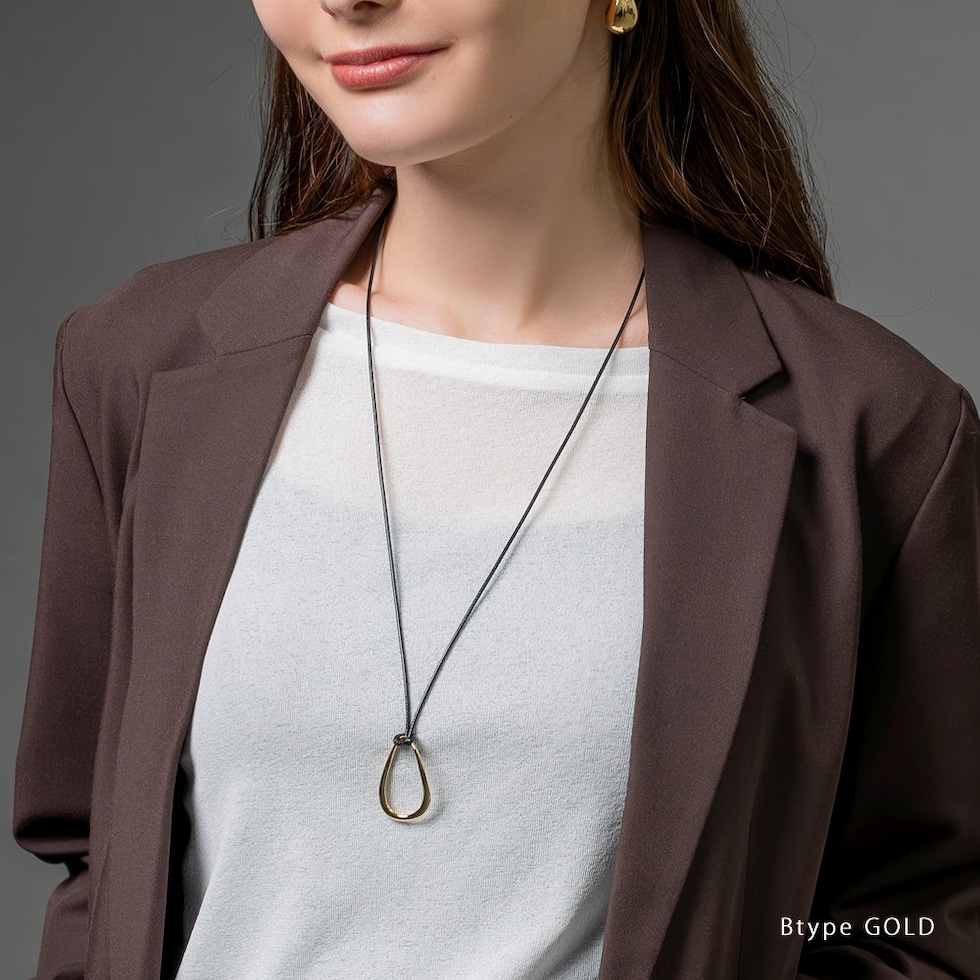 ネックレス 金属アレルギー ニッケルフリー レディース ロング グラスホルダー 2タイプ レザーコード オーバル サークル ひねり 調整可能 cream dot ゆうパケット [B:シルバー_フリーサイズ]