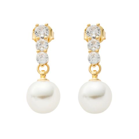 3粒のビジューとパールを組み合わせた華やかなイヤリング/ピアス。ビジューがさりげなく煌めき、艶やかパールが上品見えする女性らしいデザイン。普段使いはもちろん、結婚式・お呼ばれ・パーティーシーンなどで活躍すること間違いなしのアイテムです。低アレルギーのニッケルフリー素材を使用しているので、長時間の着用も安心です。