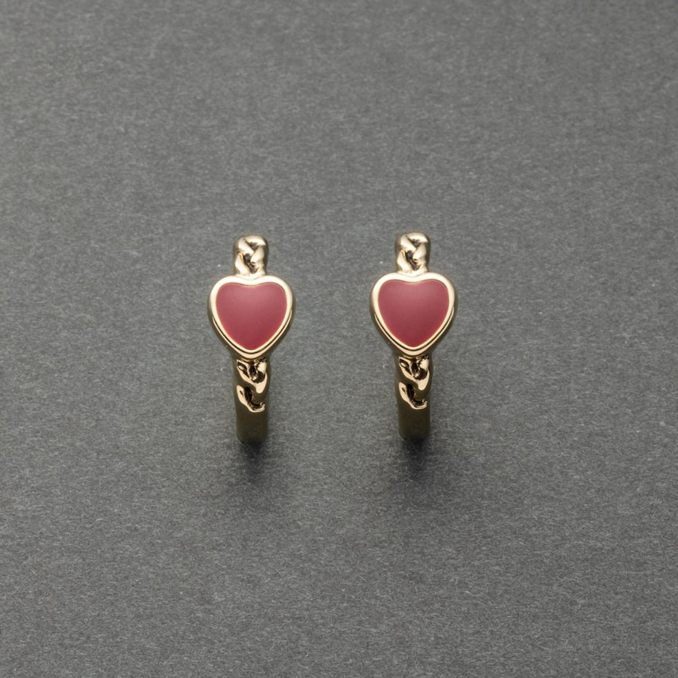 ハートモチーフとチェーンデザインを組み合わせたキャッチレスフープピアス。大人らしい甘さをプラスできる控えめなサイジングが◎小ぶりながらも耳元に存在感をプラスします。低アレルギーのニッケルフリー素材を使用しているので、長時間の着用も安心です。