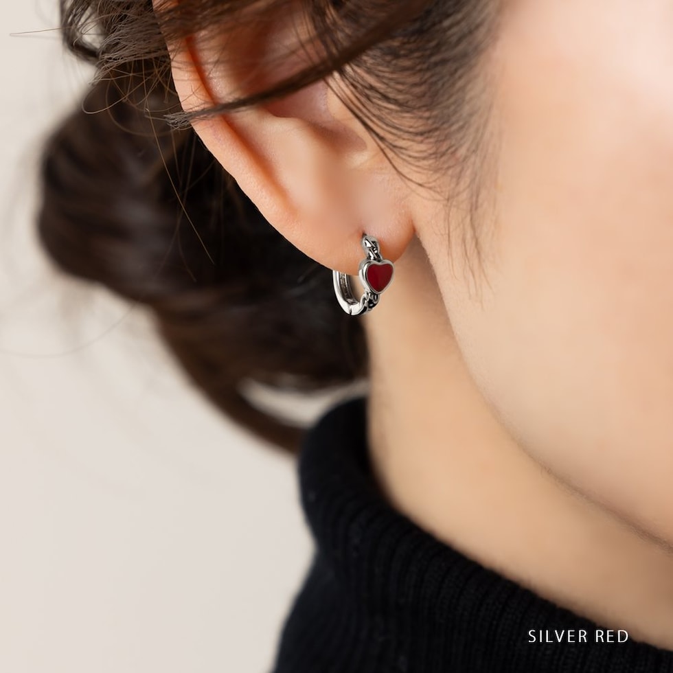 【ピアス】シルバー×レッド