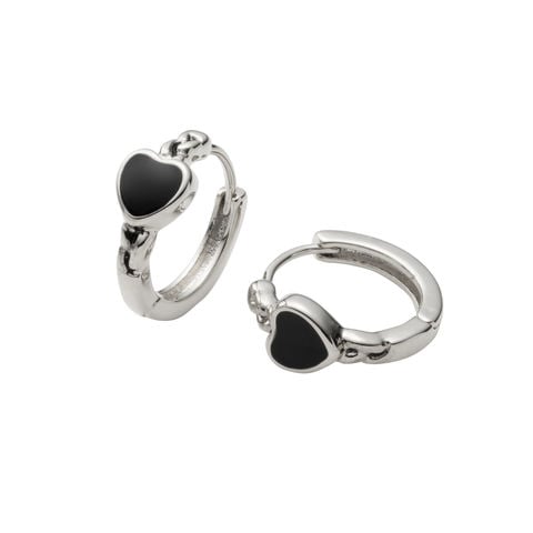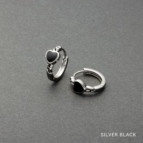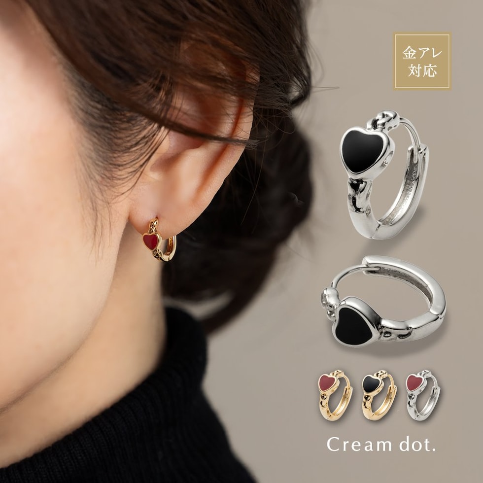 ピアス 金属アレルギー ニッケルフリー レディース フープ ハート チェーン 小ぶり 中折れ キャッチレス 開閉式 ブラック cream dot ゆうパケット [シルバー×ブラック_ピアス]