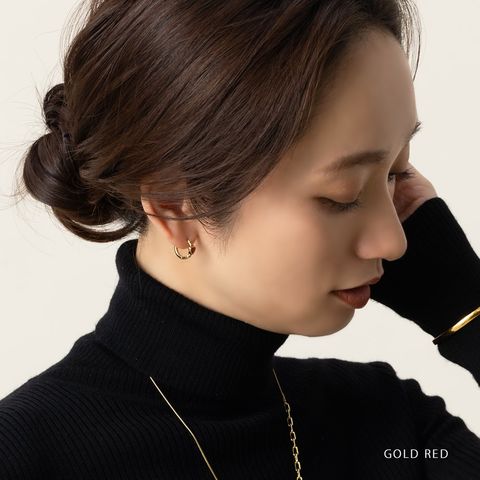 【ピアス】ゴールド×レッド