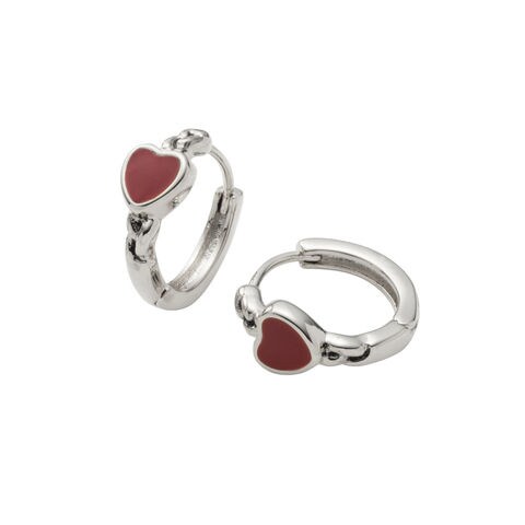 ピアス 金属アレルギー ニッケルフリー レディース フープ ハート チェーン 小ぶり 中折れ キャッチレス 開閉式 ブラック cream dot ゆうパケット [シルバー×レッド_ピアス]