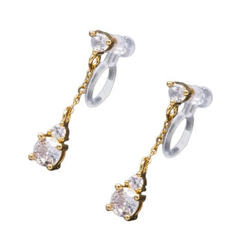 大きさの異なるビジューとチェーンを組み合わせたピアス/イヤリング。動くたびに繊細な輝きを放ちお顔周りをパっと華やかで上品な印象に仕上げてくれます。デイリーコーデのクラスアップアイテムとしても◎低アレルギーのチタンポスト、その他メタル部分にはニッケルフリー素材を使用しているので、長時間の着用も安心です