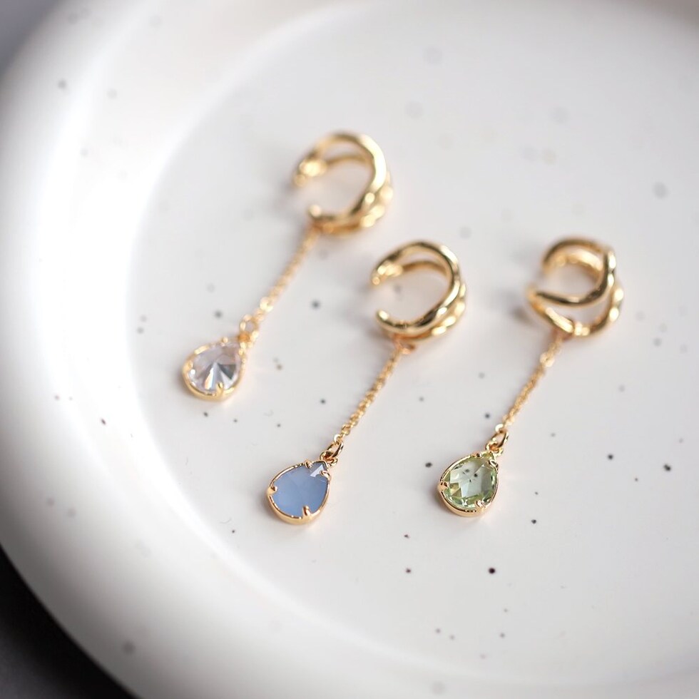 イヤーカフ 金属アレルギー ニッケルフリー レディース イヤーカフ ドロップ ストーン 多面カット 揺れる チェーン カラーストーン 片耳用 cream dot ゆうパケット [クリア_ワンサイズ]
