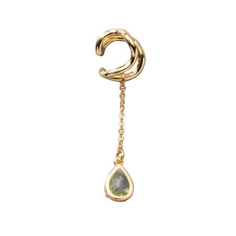 イヤーカフ 金属アレルギー ニッケルフリー レディース イヤーカフ ドロップ ストーン 多面カット 揺れる チェーン カラーストーン 片耳用 cream dot ゆうパケット [グリーン_ワンサイズ]