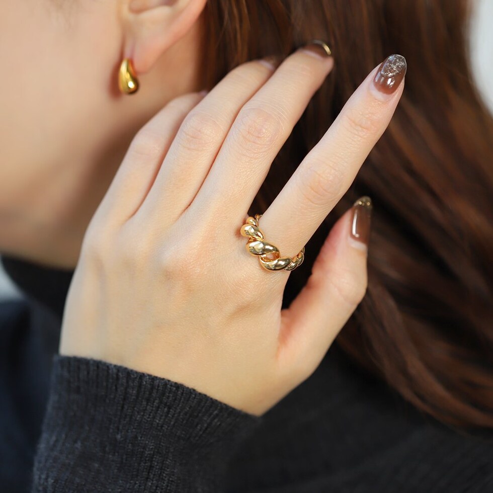 リング 指輪 金属アレルギー ニッケルフリー レディース ぷっくり ツイスト オープンリング 微調整可能 メタル フリーサイズ cream dot ゆうパケット [ゴールド_フリーサイズ]