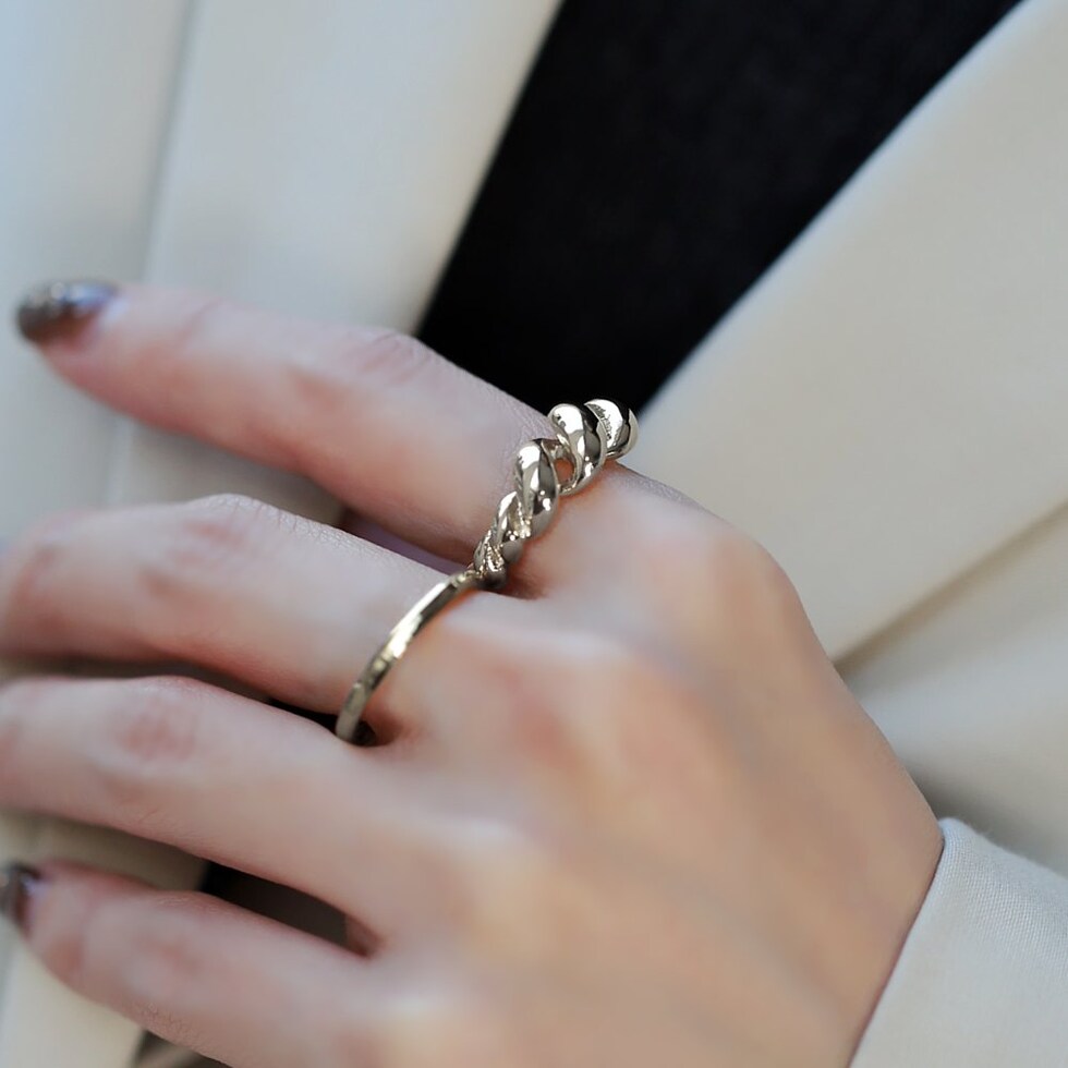 ぷっくりツイストのオープンリング。くるくるとツイストしたメタルが中央に向かって大きくなるぷっくりとした立体的なデザイン。動きのあるフォルムが自然と周りの目を惹くはず◎個性派のあなたの手元に一癖加えておしゃれを楽しんで。