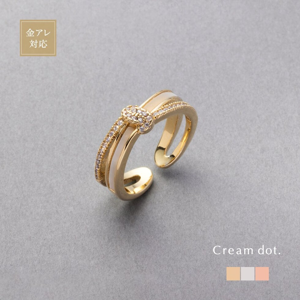 リング 指輪 金属アレルギー ニッケルフリー レディース オープンリング シェル ビジュー ノット cream dot ゆうパケット [ピンクゴールド_フリーサイズ]