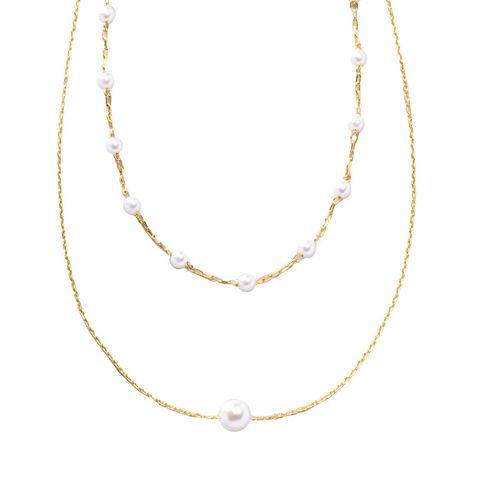 シンプルな一粒パールとステーションパールの2SETネックレス。キラキラと煌く華奢チェーンと主張しすぎないサイジングのパールで単品でもセットでも幅広く使えそう◎デイリーはもちろんお呼ばれシーンにもオススメ。