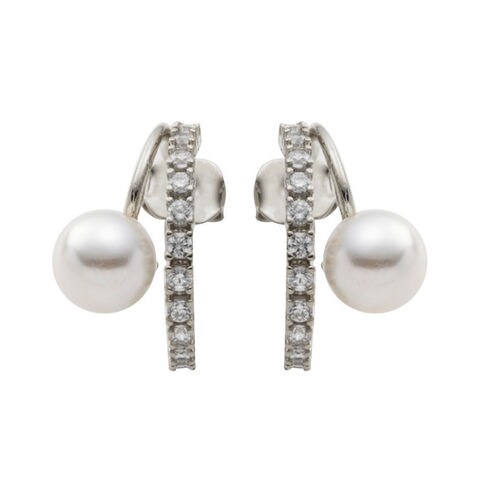 一粒パールと煌めくビジューラインのレイヤード風フープピアス/イヤリング。繊細なデザインが耳元を上品に彩り華やかな雰囲気をプラスします。小粒ビジューの派手過ぎない煌めきが大人コーデのアクセントにピッタリなひと品。