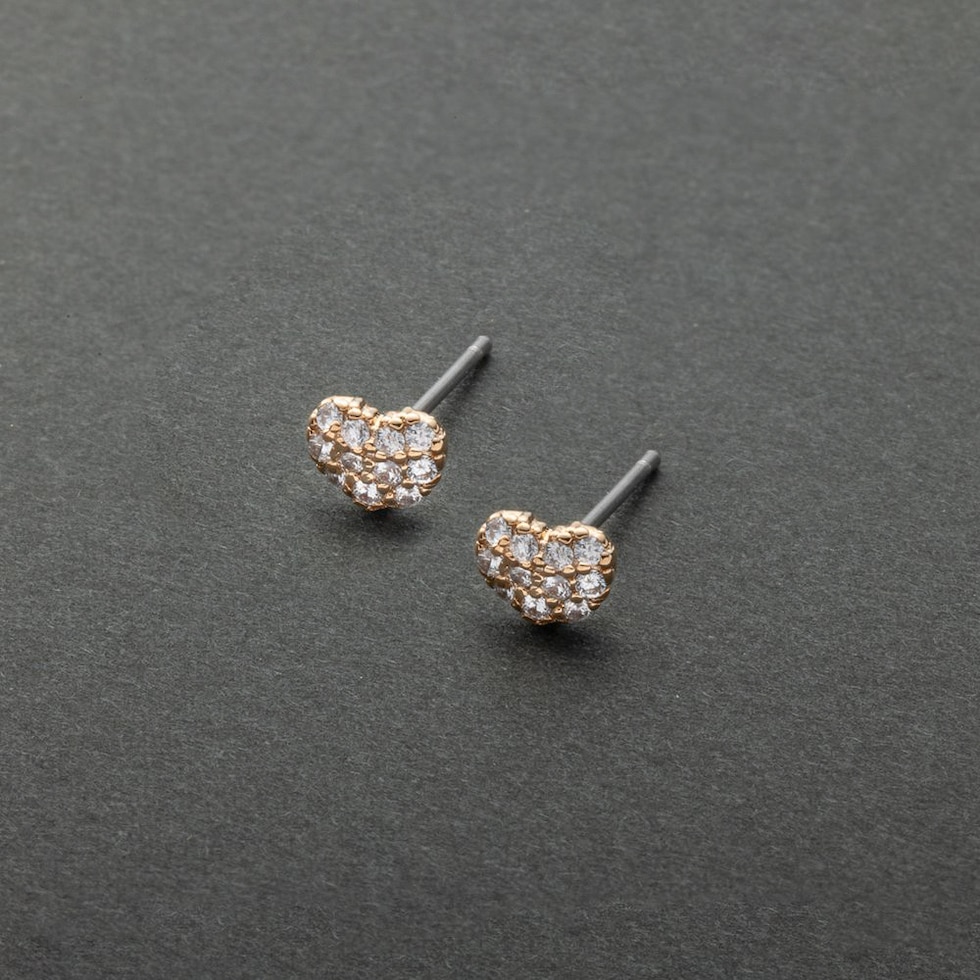 ピアス 金属アレルギー ニッケルフリー レディース ビジュー ハート パヴェ マイクロ 極小 シリコンキャッチ cream dot ゆうパケット [ピンクゴールド_ピアス]