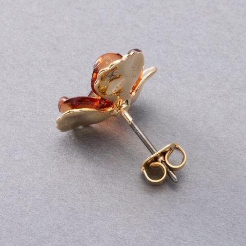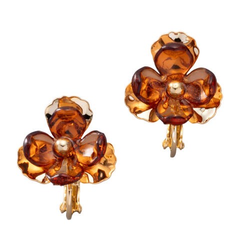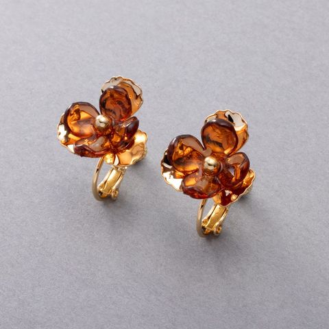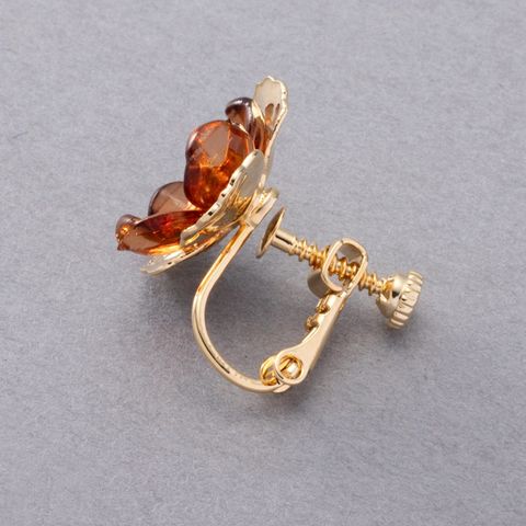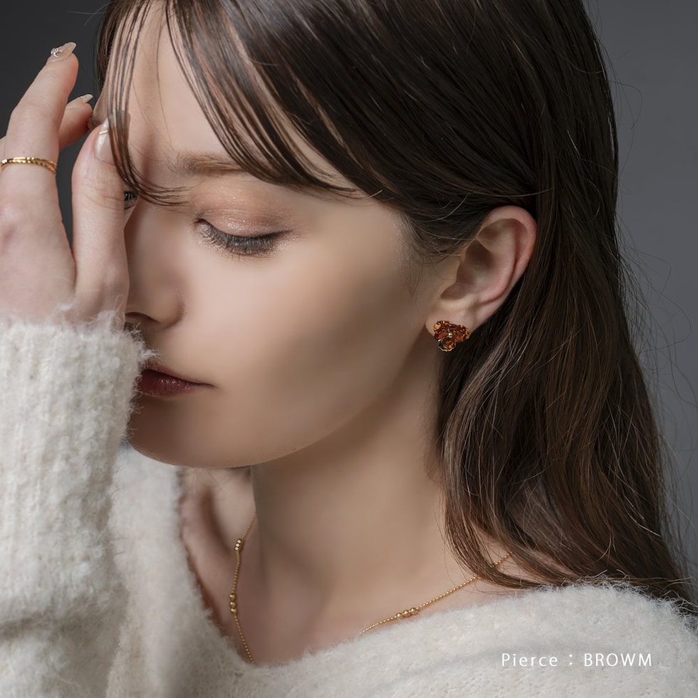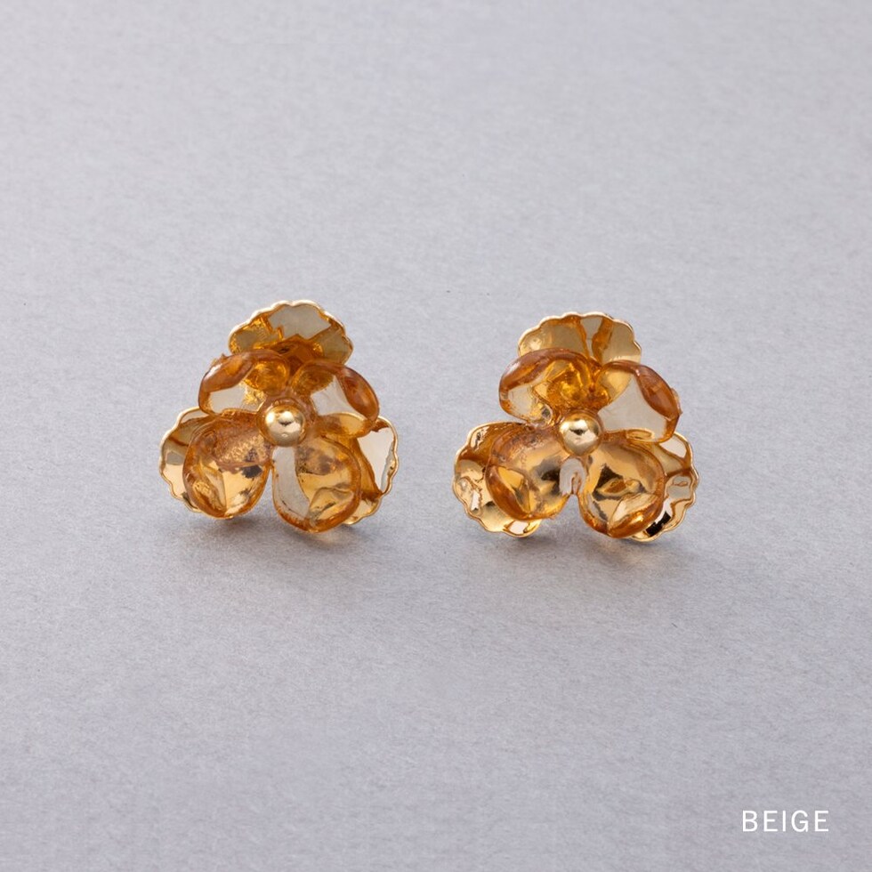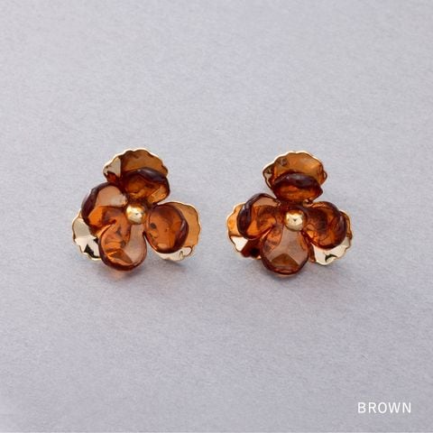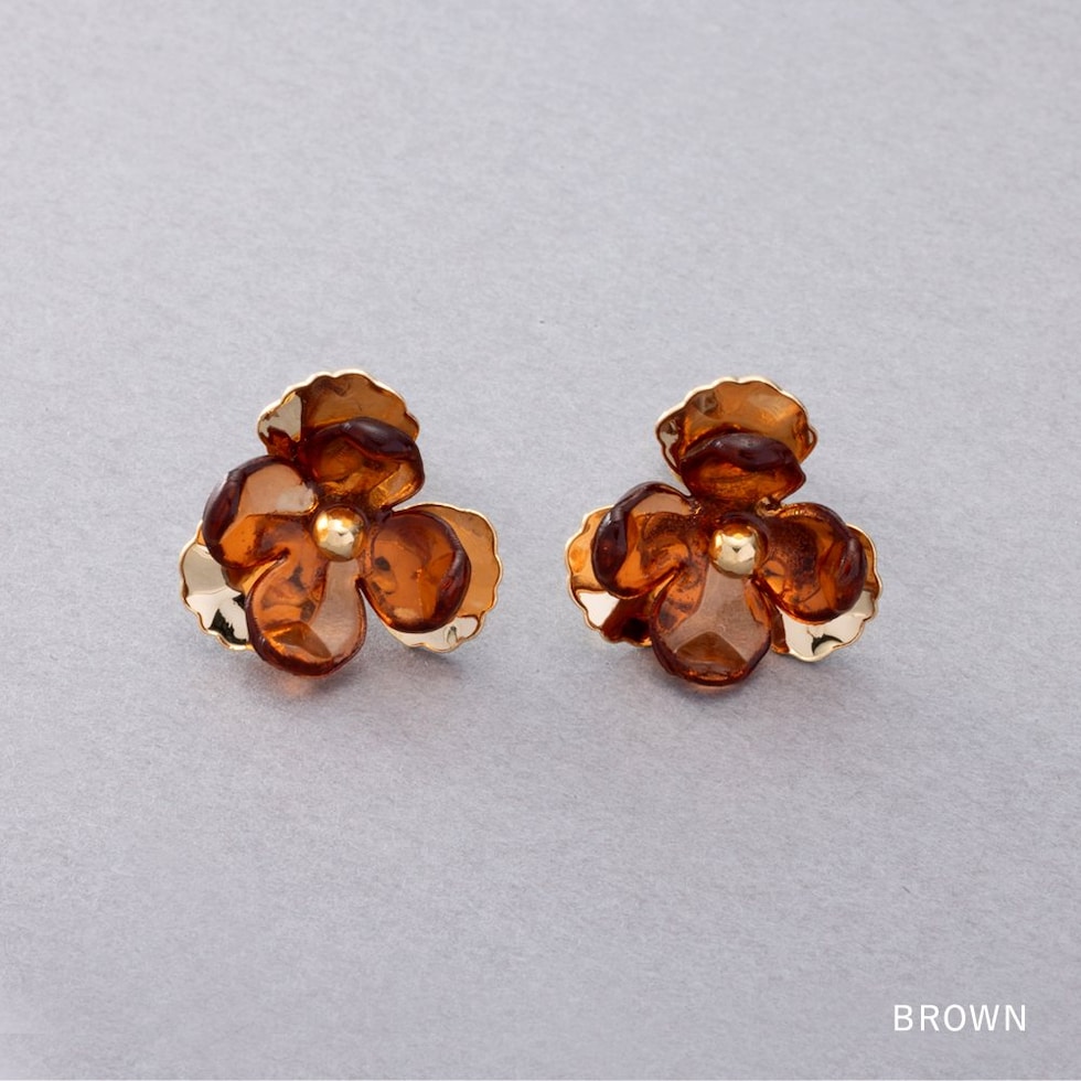 ピアス イヤリング 金属アレルギー ニッケルフリー レディース 18kコーティング フラワー クリアカラー ぷっくり メタル 透明感 cream dot ゆうパケット [ブラウン_イヤリング]