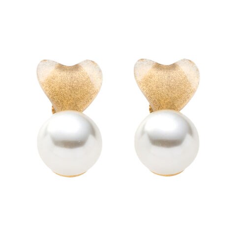 イヤリング ピアス 金属アレルギー ニッケルフリー レディース 18kコーティング ハート パール メタル cream dot ゆうパケット [ゴールド_イヤリング]