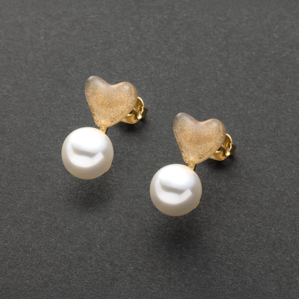イヤリング ピアス 金属アレルギー ニッケルフリー レディース 18kコーティング ハート パール メタル cream dot ゆうパケット [ゴールド_ピアス]